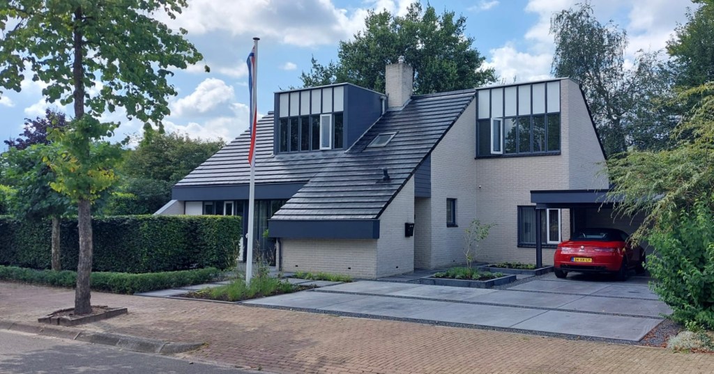 De ingang van La Sorpresa zit aan de rechterkant (bij de carport) van het huis.